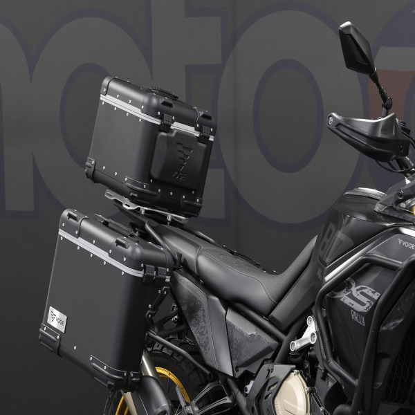 45lt κεντρική βαλίτσα με δερμάτινη επένδυση/ πλάκα γενικής χρήσης για γρήγορη αφαίρεση/ άνω και κάτω πλάτη/ 39lt & 33lt πλευρικές βαλίτσες δερμάτινη επένδυση/ πλευρικά πλαίσια VOGE DS625X